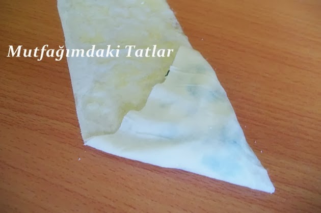 · bir sol köşeye yufkayı katlayalım. Ve bu işlemi yufka bitene kadar tekrarlayalım.