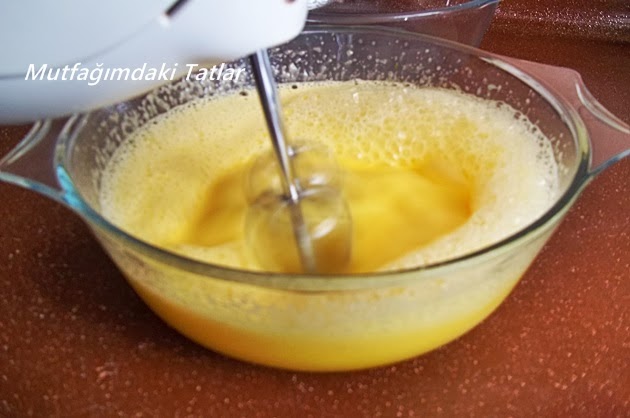 · Yumurtaları mikserle köpürüne kadar iyice çırpalım.
